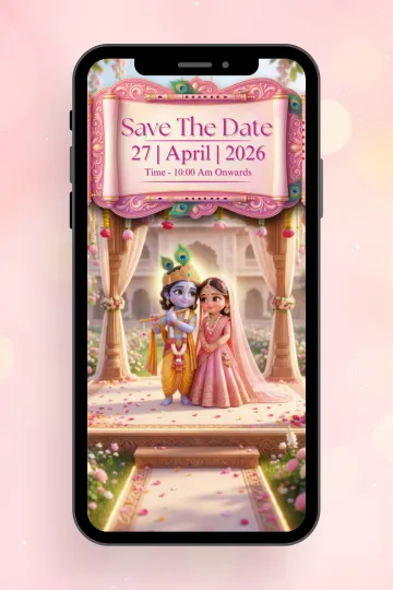 Experience divine romance and eternal love with an AI-powered Radha Krishna–themed wedding invitation. Inspired by the timeless bond of Radha and Krishna, this invitation blends spiritual elegance with modern AI animation, featuring graceful visuals, soft flute melodies, lotus and peacock motifs, and temple-inspired aesthetics.
